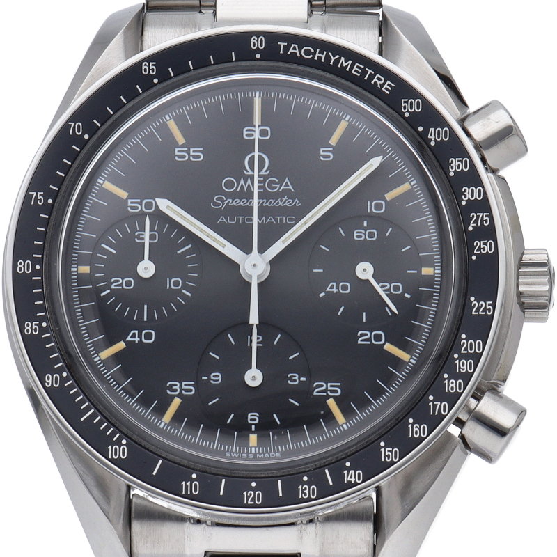 オメガを代表する人気シリーズ「スピードマスター」。プラ風防を使用したレトロな雰囲気かつシンプルにまとまったデザインがスタイルを選ばずにご使用いただけます。