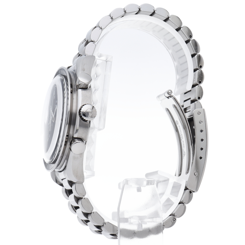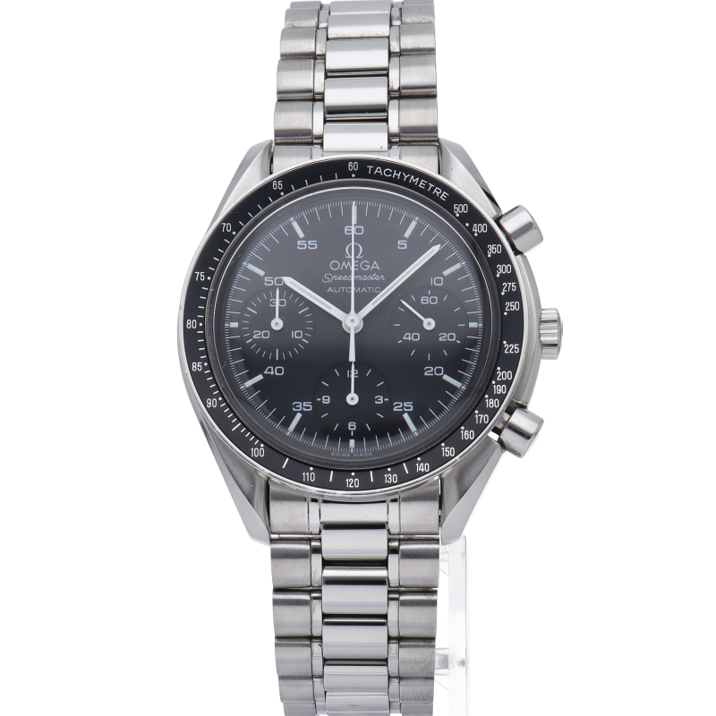 オメガを代表する人気シリーズ「スピードマスター」。プラ風防を使用したレトロな雰囲気かつシンプルにまとまったデザインがスタイルを選ばずにご使用いただけます。