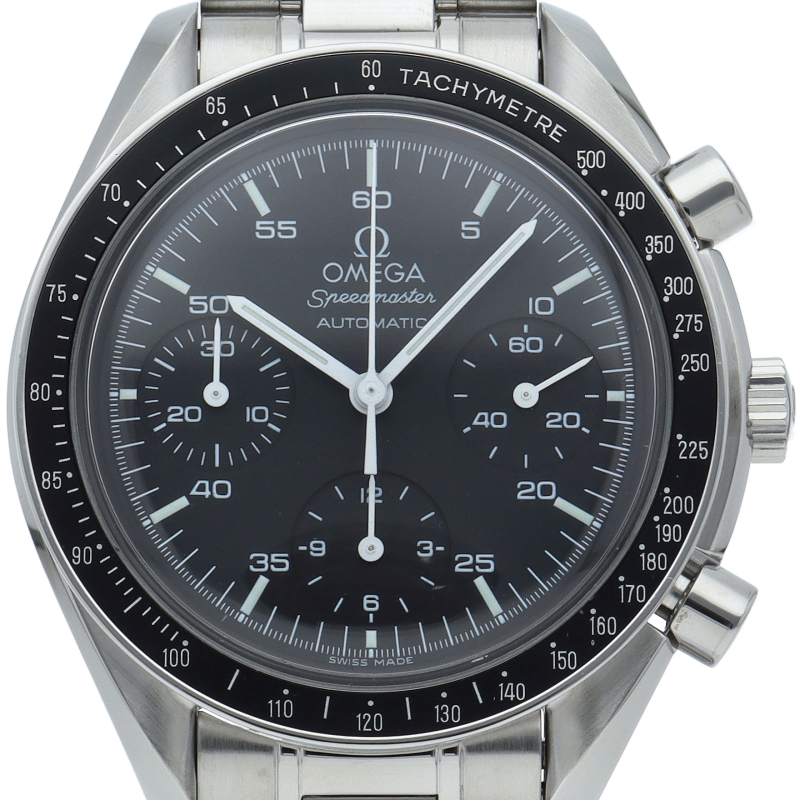 オメガを代表する人気シリーズ「スピードマスター」。プラ風防を使用したレトロな雰囲気かつシンプルにまとまったデザインがスタイルを選ばずにご使用いただけます。