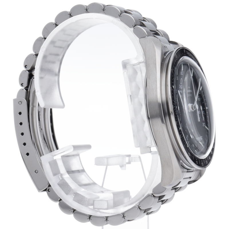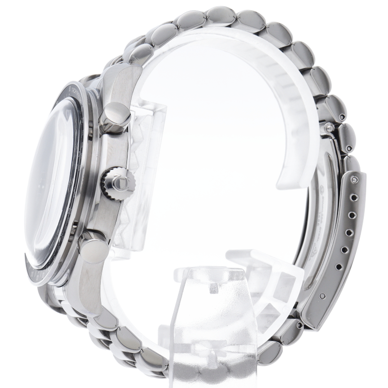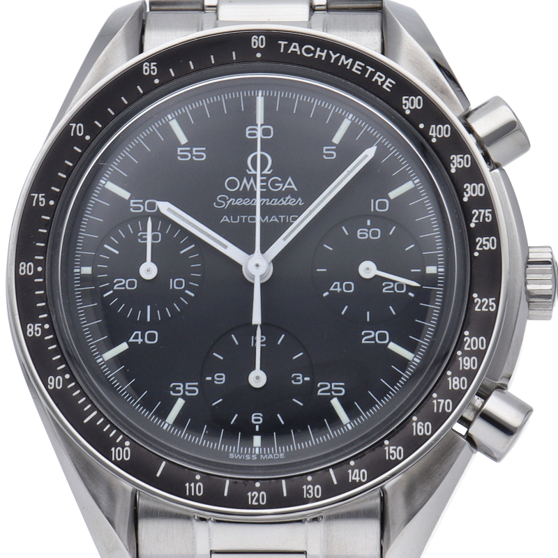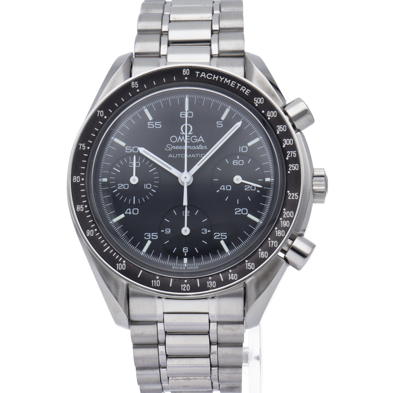 オメガを代表する人気シリーズ「スピードマスター」。プラ風防を使用したレトロな雰囲気かつシンプルにまとまったデザインがスタイルを選ばずにご使用いただけます。