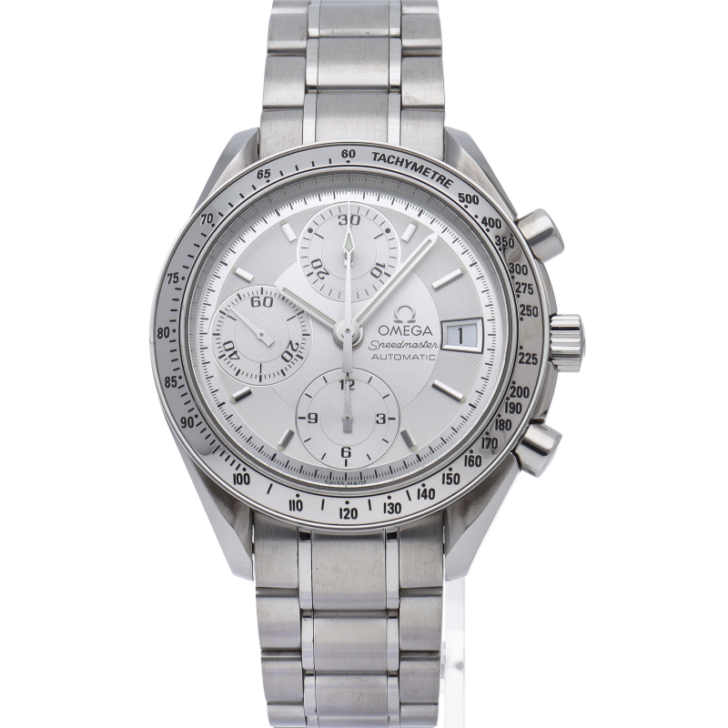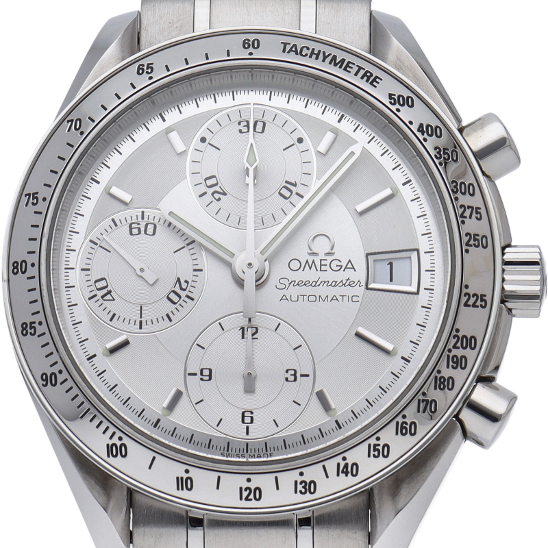 オメガの代表的な人気シリーズ「スピードマスター・デイト」。クロノグラフ・デイト表示機能付きと便利で実用性のある1本です。