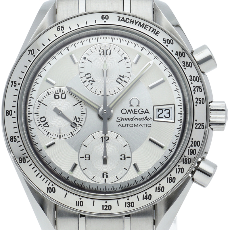 オメガの代表的な人気シリーズ「スピードマスター・デイト」。クロノグラフ・デイト表示機能付きと便利で実用性のある1本です。