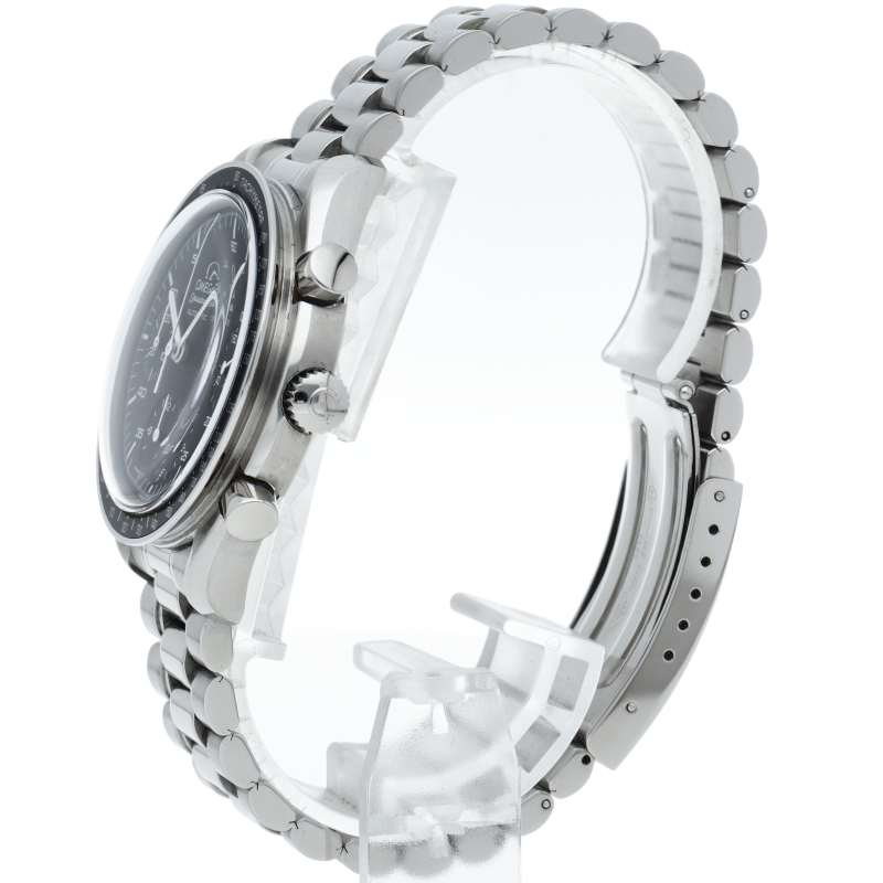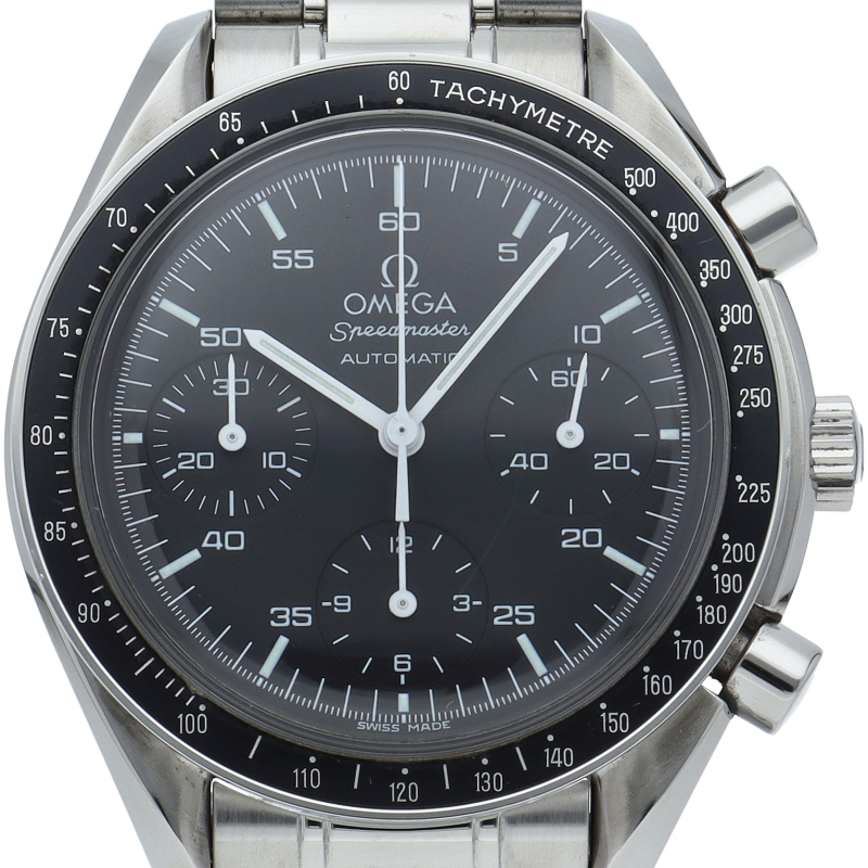 オメガを代表する人気シリーズ「スピードマスター」。プラ風防を使用したレトロな雰囲気かつシンプルにまとまったデザインがスタイルを選ばずにご使用いただけます。