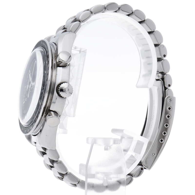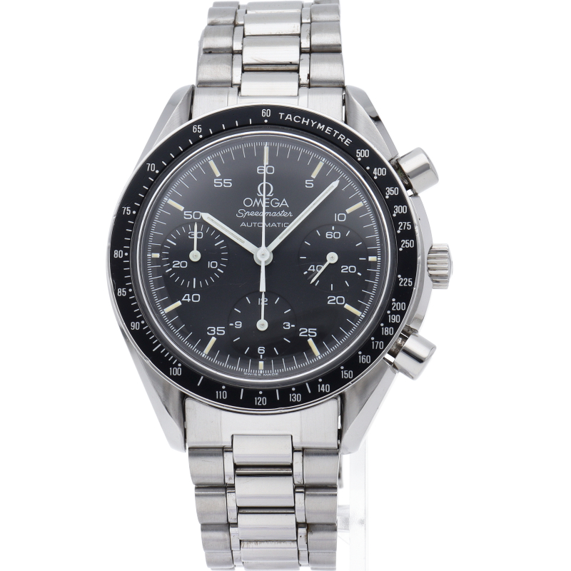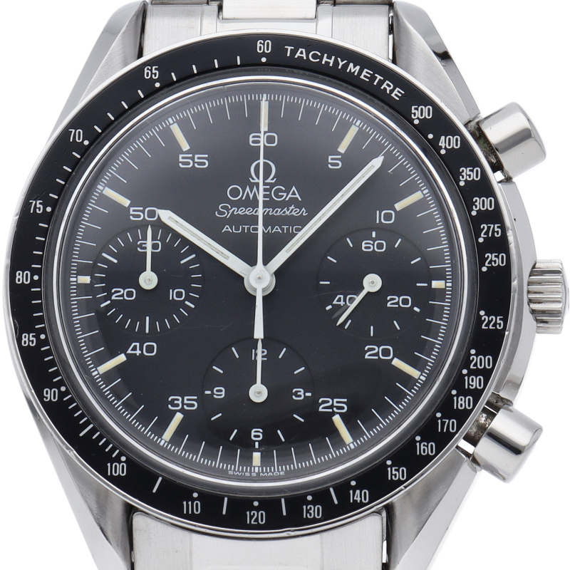 オメガを代表する人気シリーズ「スピードマスター」。プラ風防を使用したレトロな雰囲気かつシンプルにまとまったデザインがスタイルを選ばずにご使用いただけます。