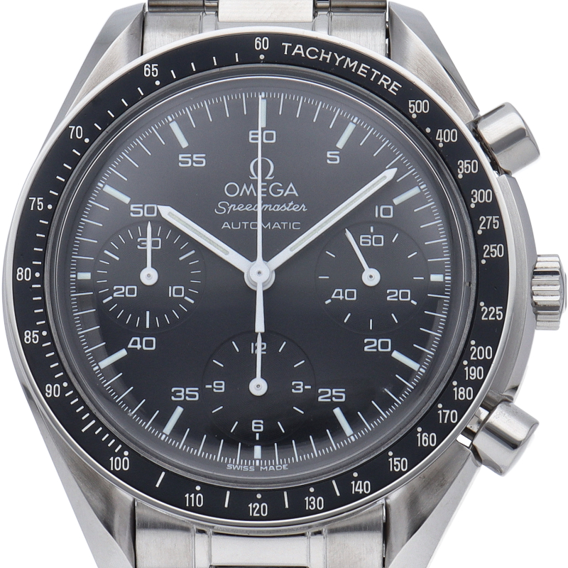 オメガを代表する人気シリーズ「スピードマスター」。プラ風防を使用したレトロな雰囲気かつシンプルにまとまったデザインがスタイルを選ばずにご使用いただけます。