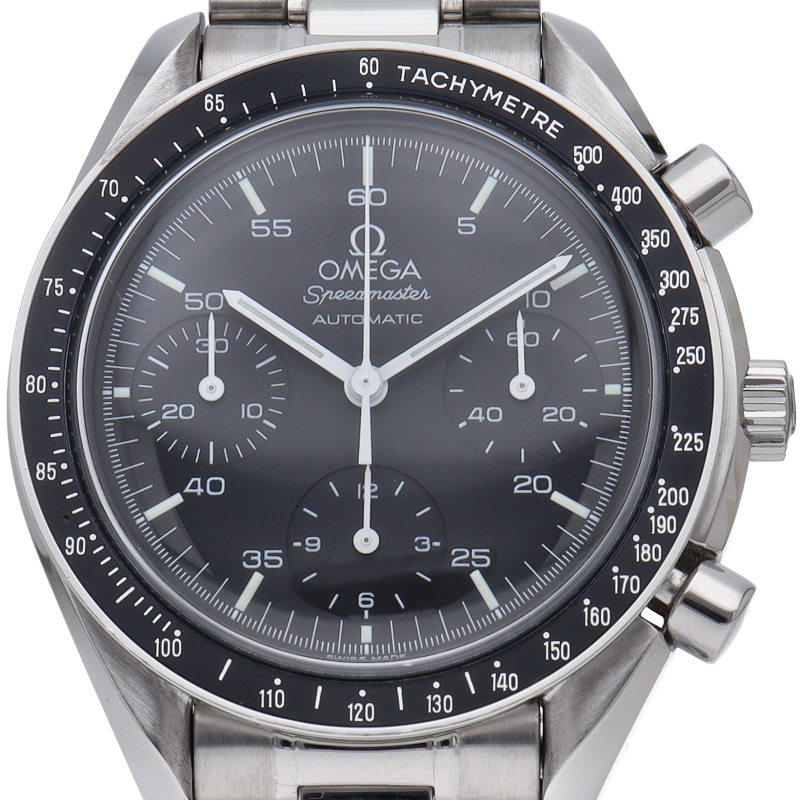 オメガを代表する人気シリーズ「スピードマスター」。プラ風防を使用したレトロな雰囲気かつシンプルにまとまったデザインがスタイルを選ばずにご使用いただけます。