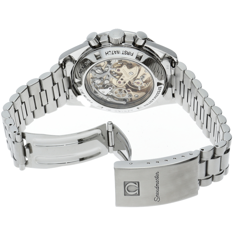 オメガを代表する人気モデルでムーンウォッチとしても有名な1本。シースルーバックから覗ける手巻ムーブメントが特徴的な1本。初期モデルにのみ搭載された金メッキのムーブメントを搭載しております。トリチウム文字盤。Cal.863。