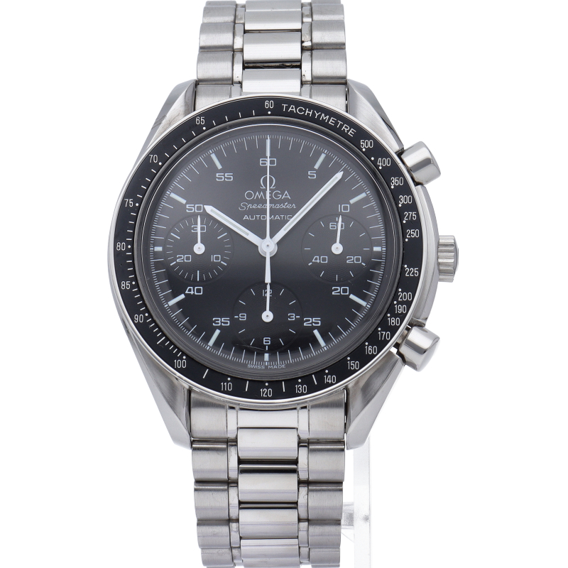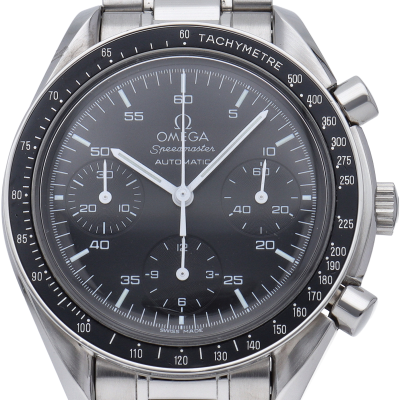オメガを代表する人気シリーズ「スピードマスター」。プラ風防を使用したレトロな雰囲気かつシンプルにまとまったデザインがスタイルを選ばずにご使用いただけます。