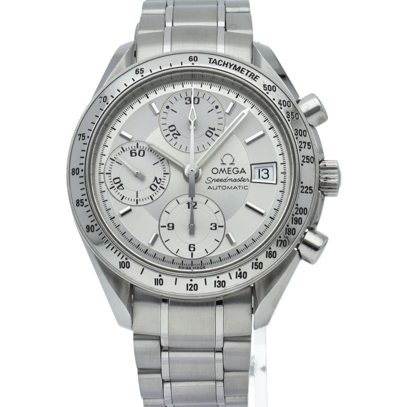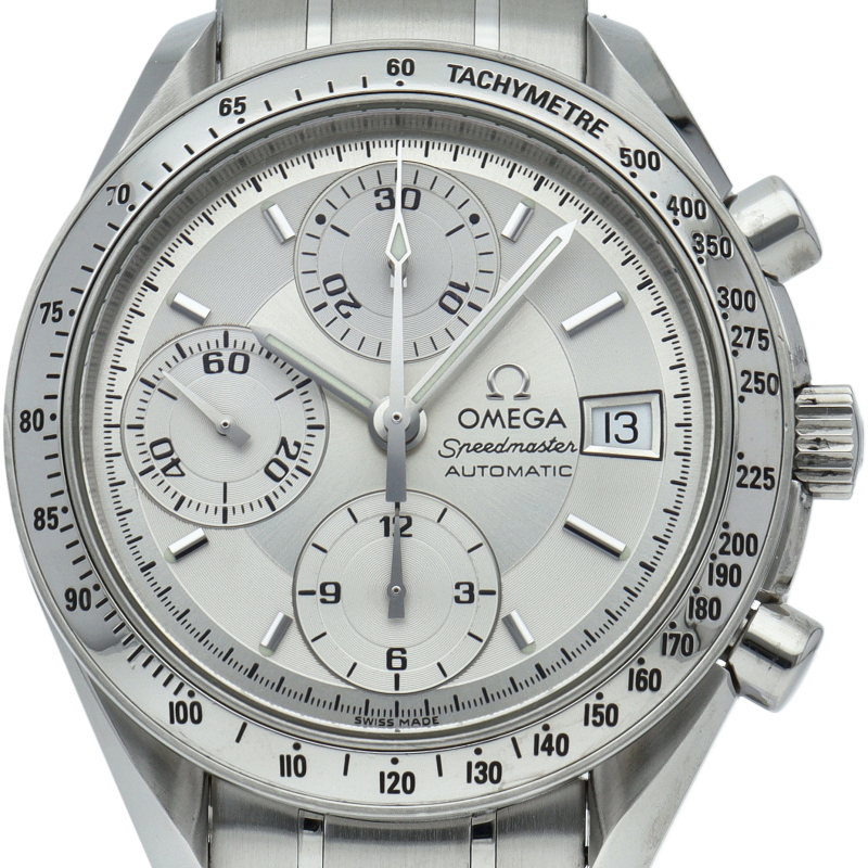 オメガの代表的な人気シリーズ「スピードマスター・デイト」。クロノグラフ・デイト表示機能付きと便利で実用性のある1本です。
