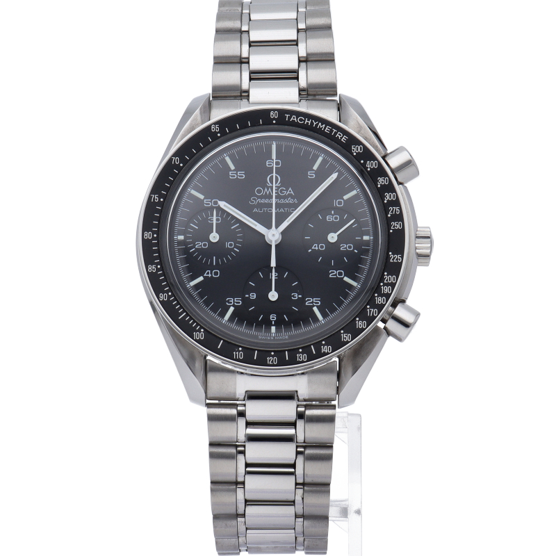 オメガを代表する人気シリーズ「スピードマスター」。プラ風防を使用したレトロな雰囲気かつシンプルにまとまったデザインがスタイルを選ばずにご使用いただけます。