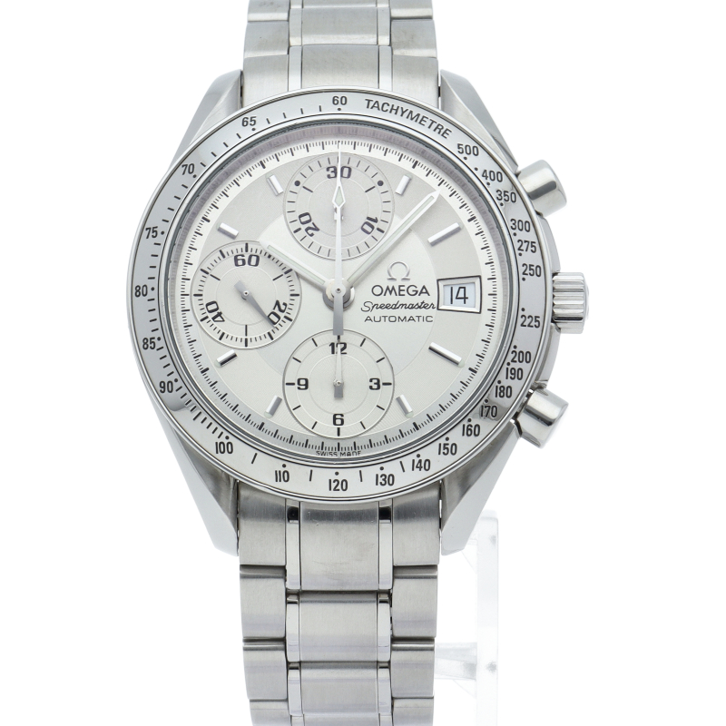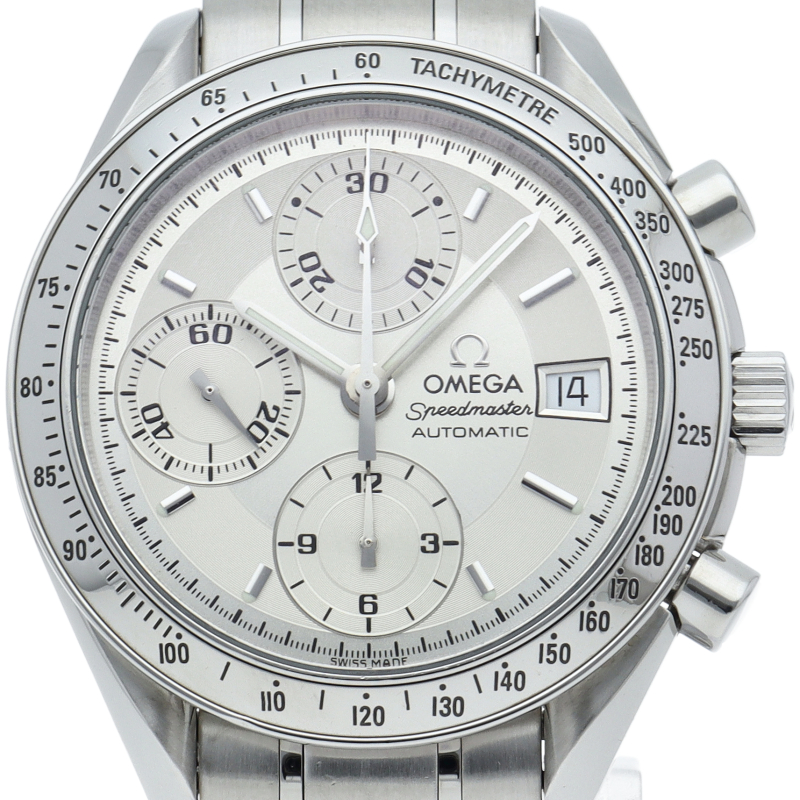オメガの代表的な人気シリーズ「スピードマスター・デイト」。クロノグラフ・デイト表示機能付きと便利で実用性のある1本です。