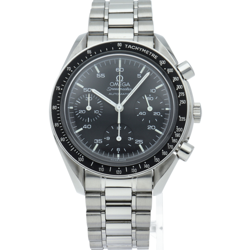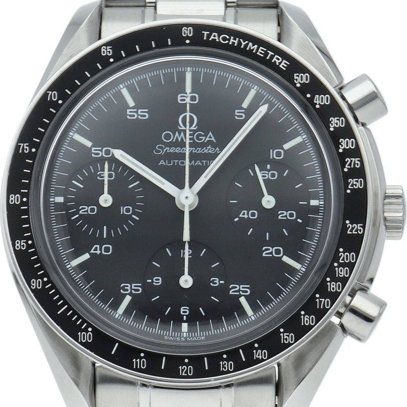 オメガを代表する人気シリーズ「スピードマスター」。プラ風防を使用したレトロな雰囲気かつシンプルにまとまったデザインがスタイルを選ばずにご使用いただけます。