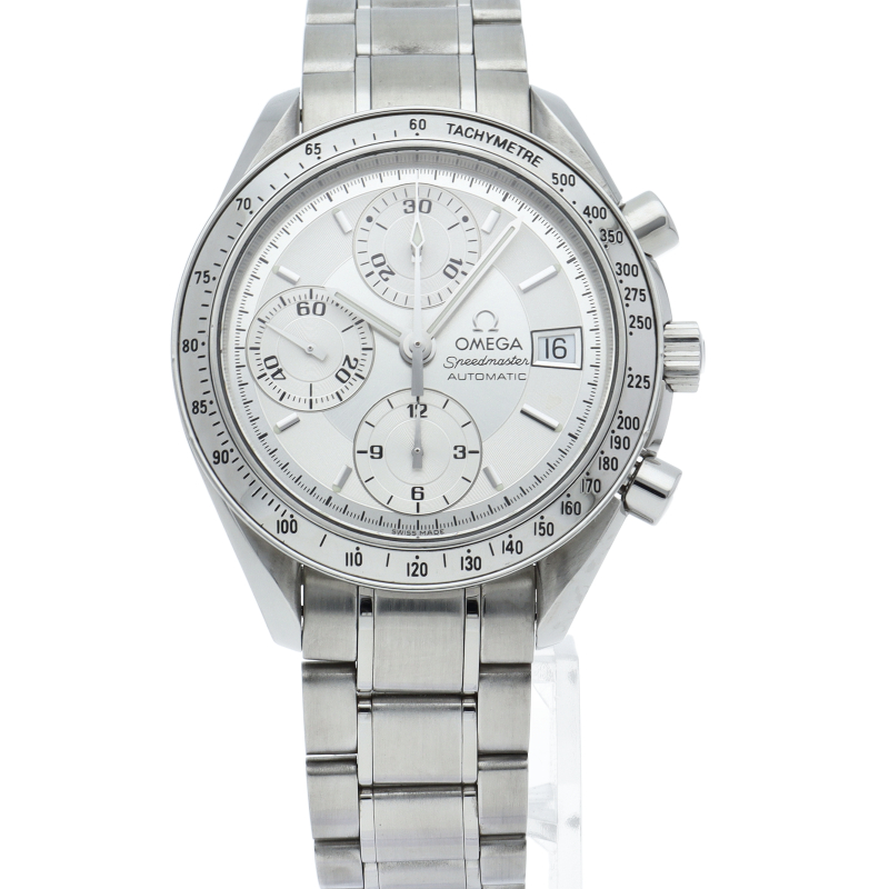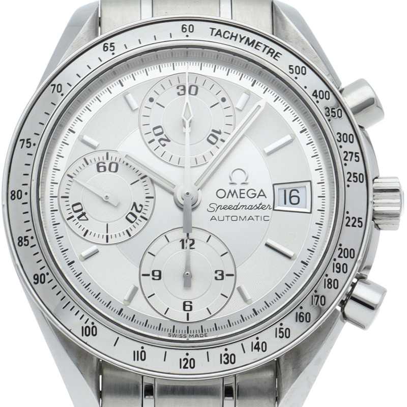オメガの代表的な人気シリーズ「スピードマスター・デイト」。クロノグラフ・デイト表示機能付きと便利で実用性のある1本です。