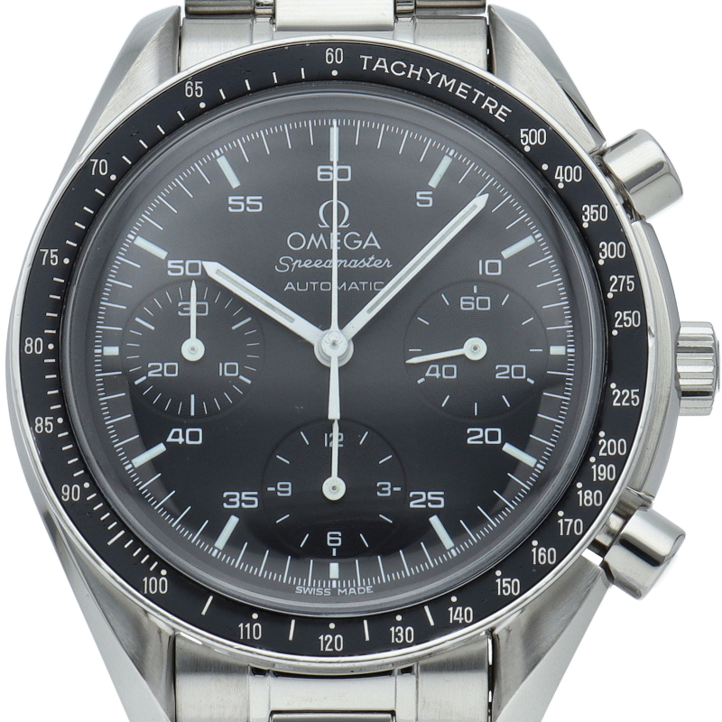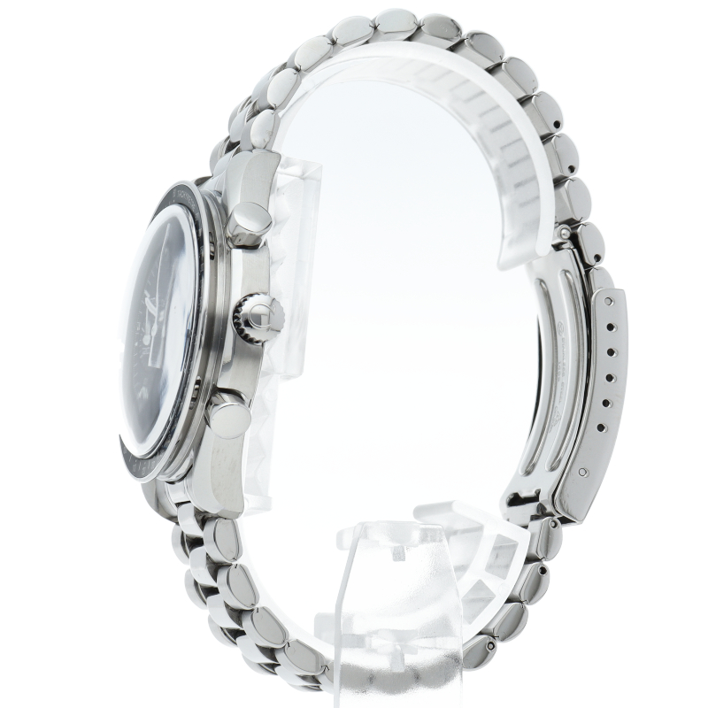 オメガを代表する人気シリーズ「スピードマスター」。プラ風防を使用したレトロな雰囲気かつシンプルにまとまったデザインがスタイルを選ばずにご使用いただけます。