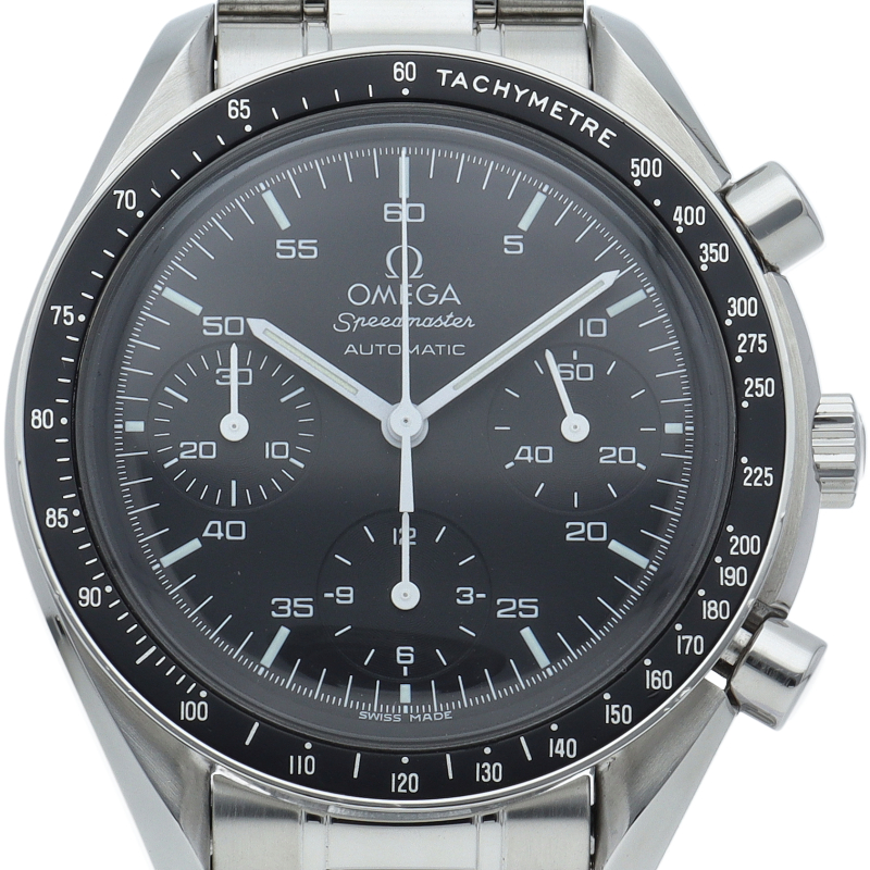 オメガを代表する人気シリーズ「スピードマスター」。プラ風防を使用したレトロな雰囲気かつシンプルにまとまったデザインがスタイルを選ばずにご使用いただけます。