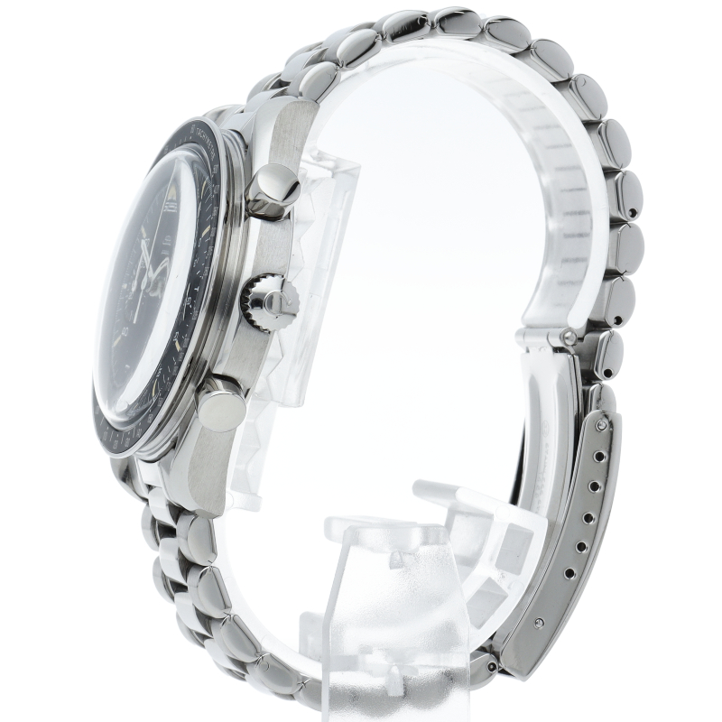 オメガを代表する人気シリーズ「スピードマスター」。プラ風防を使用したレトロな雰囲気かつシンプルにまとまったデザインがスタイルを選ばずにご使用いただけます。