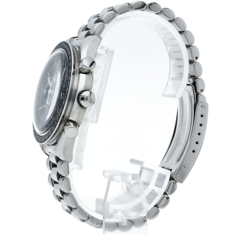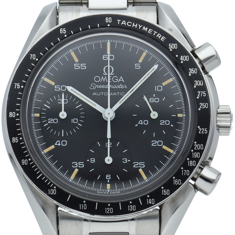 オメガを代表する人気シリーズ「スピードマスター」。プラ風防を使用したレトロな雰囲気かつシンプルにまとまったデザインがスタイルを選ばずにご使用いただけます。