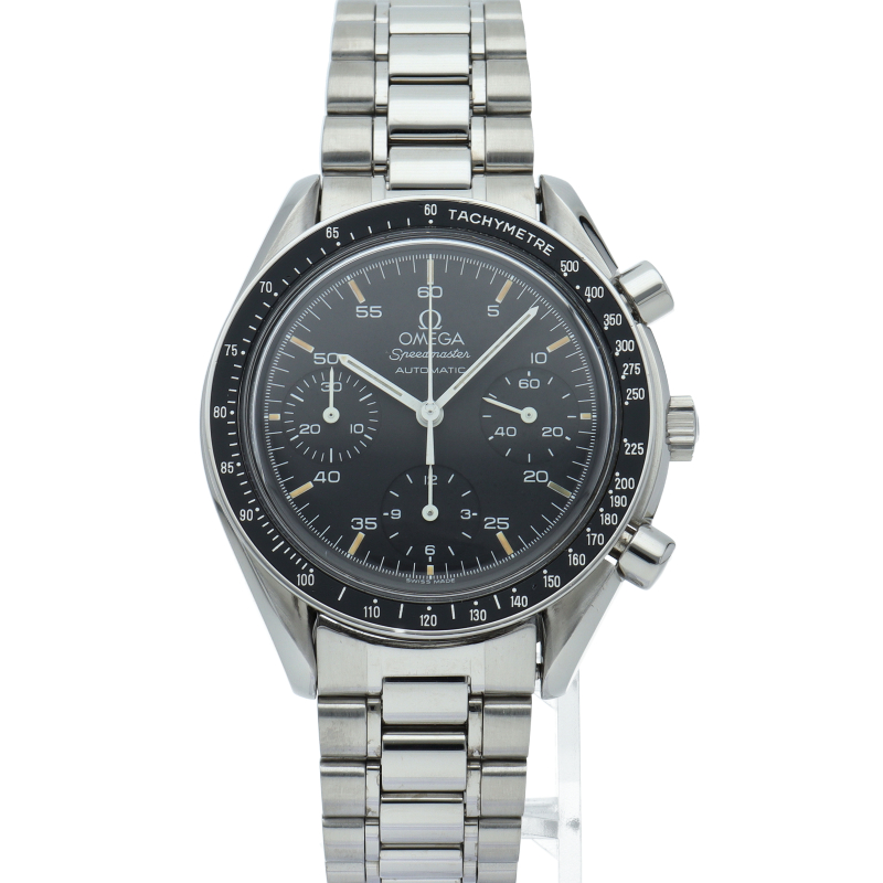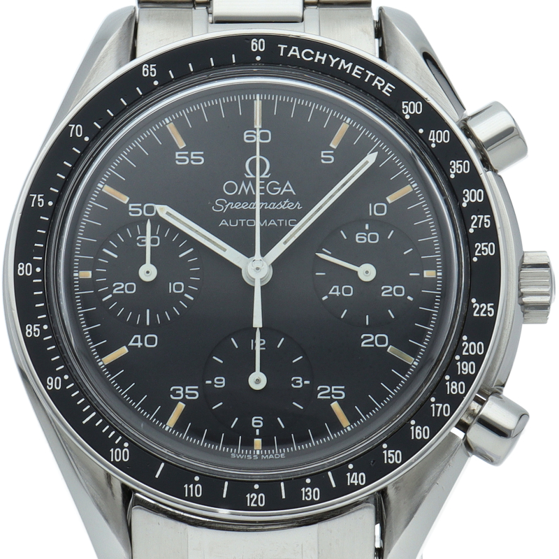 オメガを代表する人気シリーズ「スピードマスター」。プラ風防を使用したレトロな雰囲気かつシンプルにまとまったデザインがスタイルを選ばずにご使用いただけます。