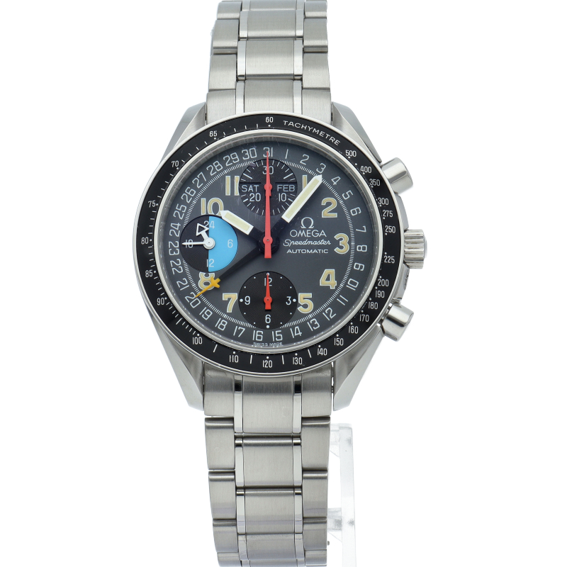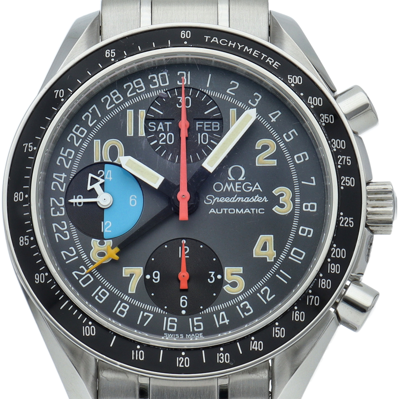 オメガを代表する人気シリーズ「スピードマスター」。トリプルカレンダーやタキメーターベゼル等多機能かつデザイン性も優れている実用的な時計です。