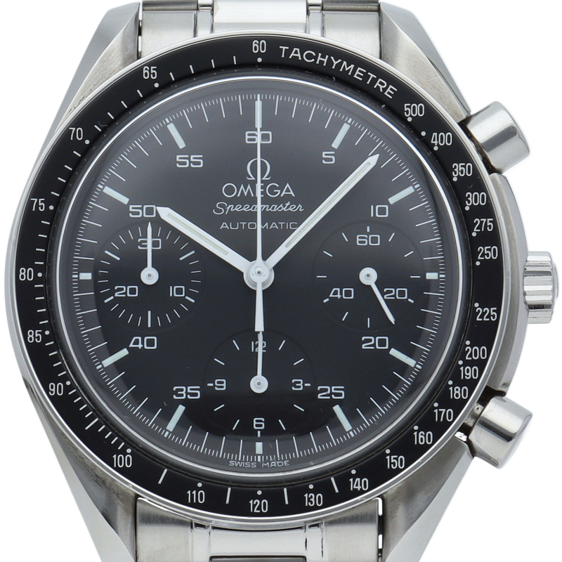オメガを代表する人気シリーズ「スピードマスター」。プラ風防を使用したレトロな雰囲気かつシンプルにまとまったデザインがスタイルを選ばずにご使用いただけます。