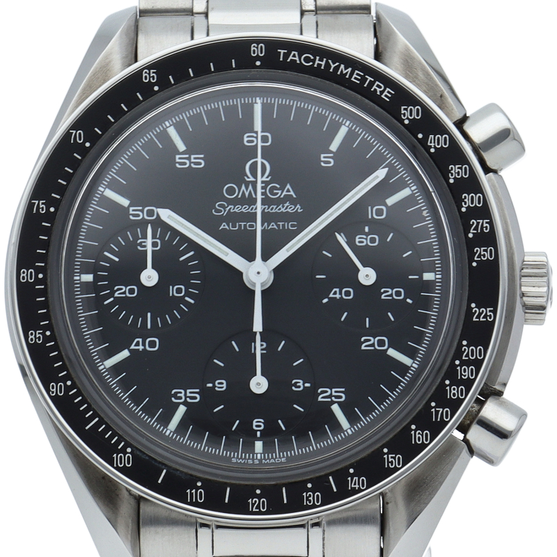 オメガを代表する人気シリーズ「スピードマスター」。プラ風防を使用したレトロな雰囲気かつシンプルにまとまったデザインがスタイルを選ばずにご使用いただけます。