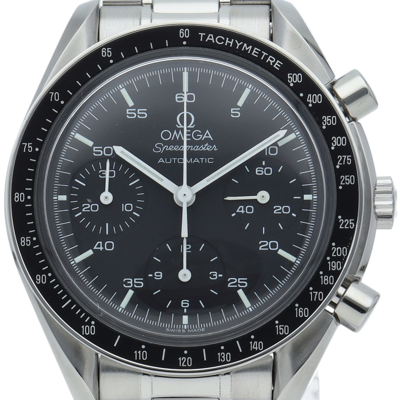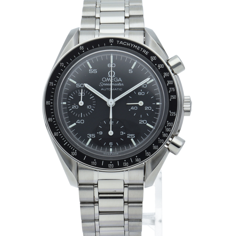 オメガを代表する人気シリーズ「スピードマスター」。プラ風防を使用したレトロな雰囲気かつシンプルにまとまったデザインがスタイルを選ばずにご使用いただけます。