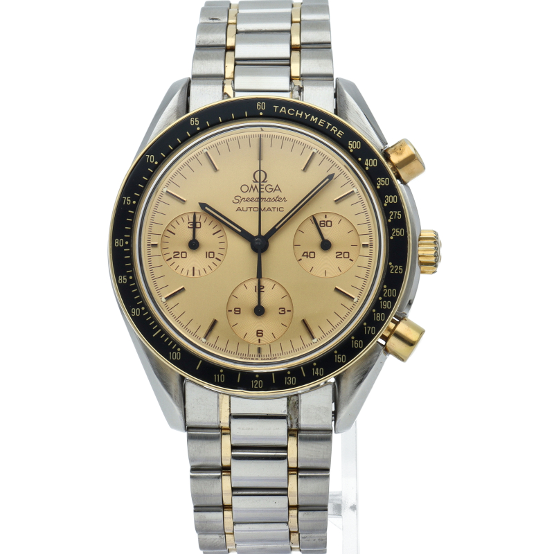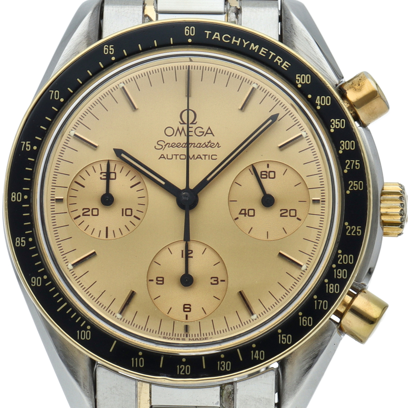オメガを代表する人気シリーズ「スピードマスター」。プラ風防を使用したレトロな雰囲気かつシンプルにまとまったデザインがスタイルを選ばずにご使用頂けます。シャンパン文字盤やコンビネーションカラーが華やかな印象を与えています。