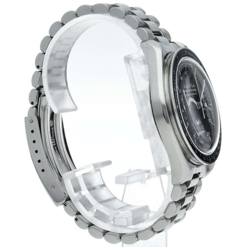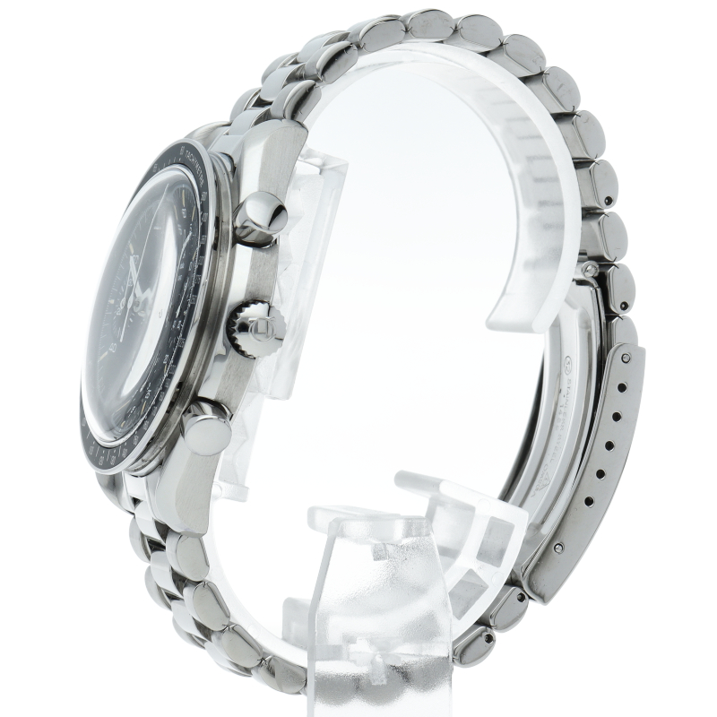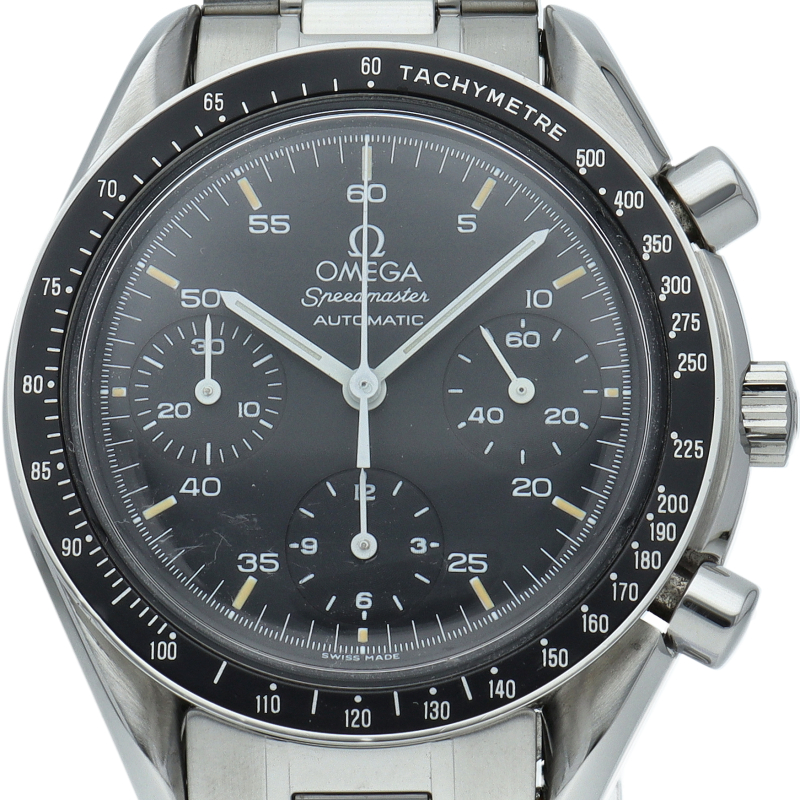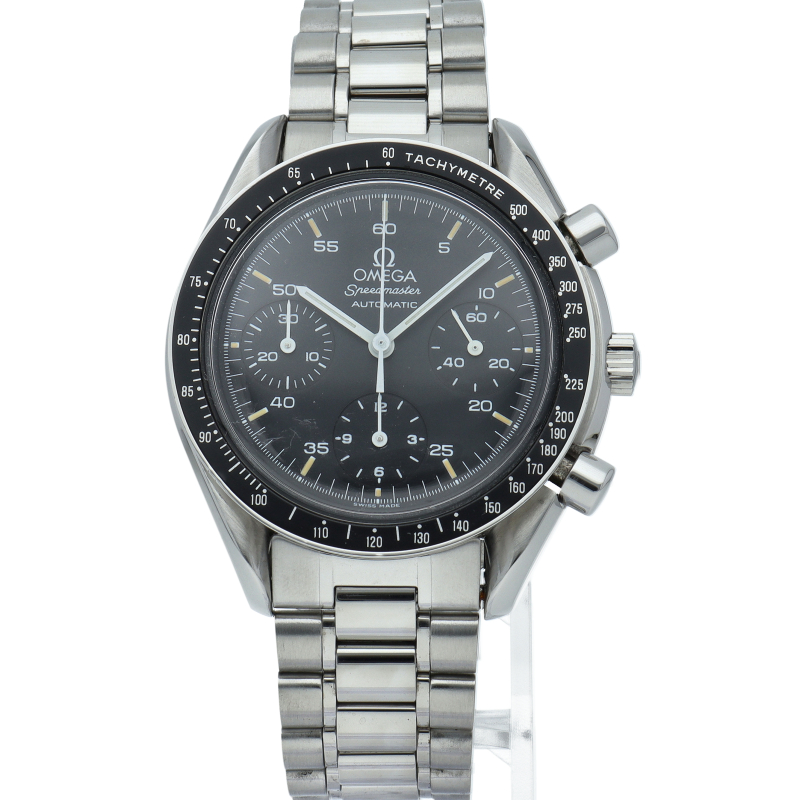 オメガを代表する人気シリーズ「スピードマスター」。プラ風防を使用したレトロな雰囲気かつシンプルにまとまったデザインがスタイルを選ばずにご使用いただけます。