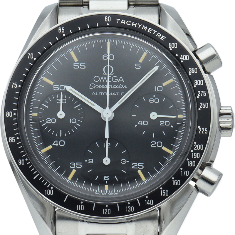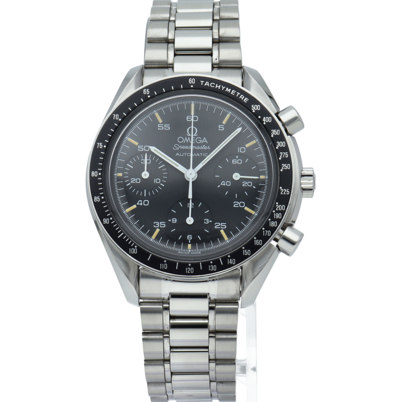 オメガを代表する人気シリーズ「スピードマスター」。プラ風防を使用したレトロな雰囲気かつシンプルにまとまったデザインがスタイルを選ばずにご使用いただけます。
