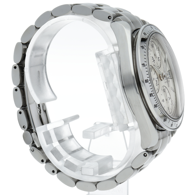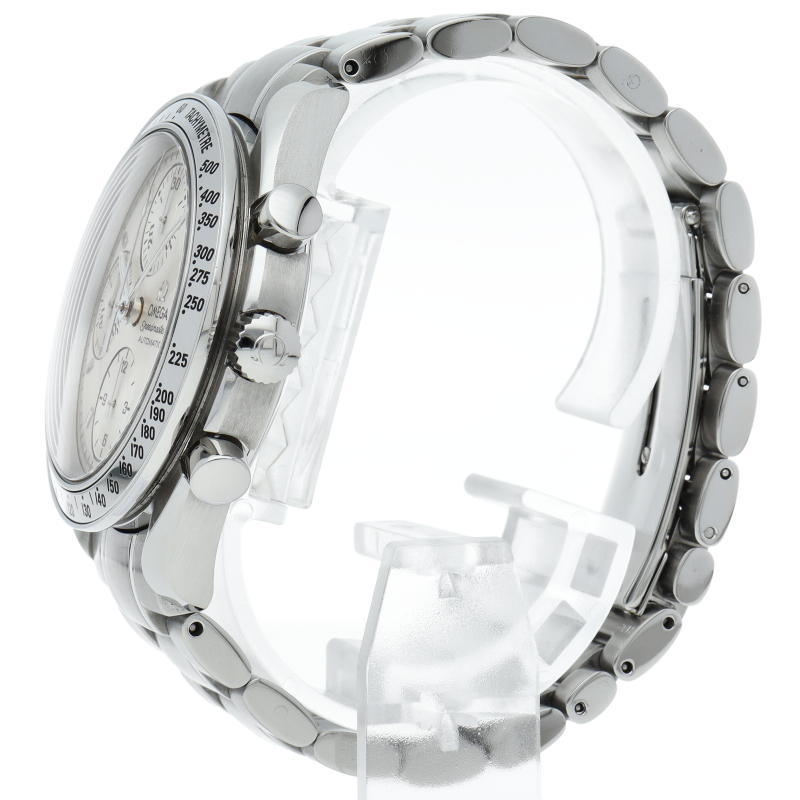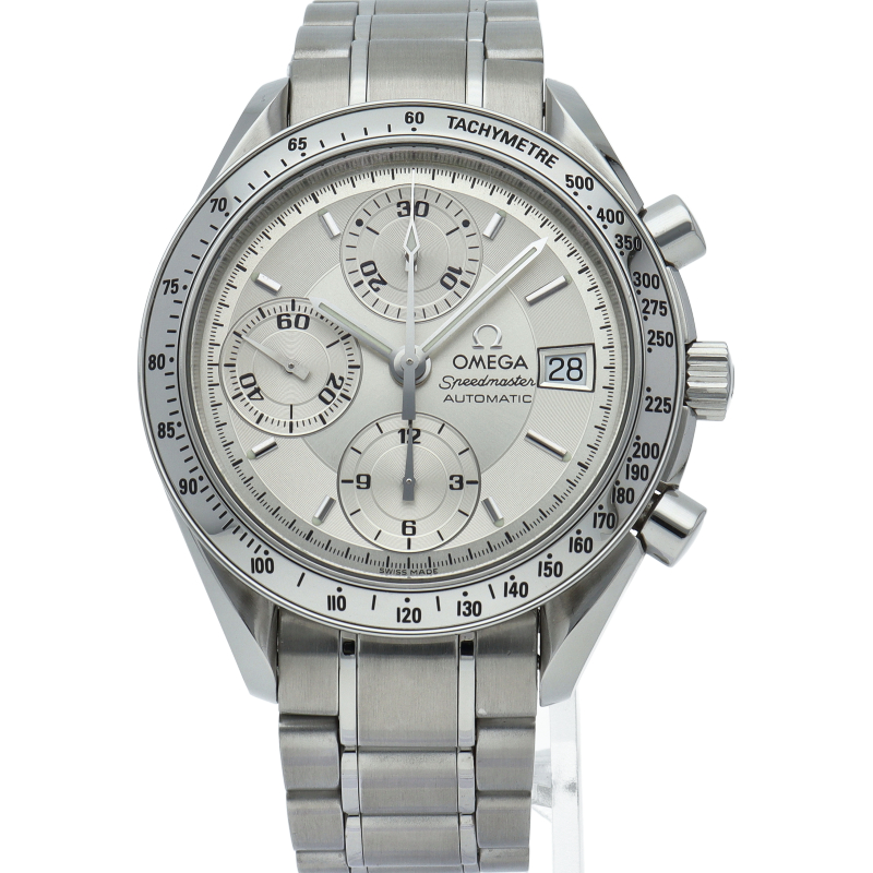 オメガの代表的な人気シリーズ「スピードマスター・デイト」。クロノグラフ・デイト表示機能付きと便利で実用性のある1本です。