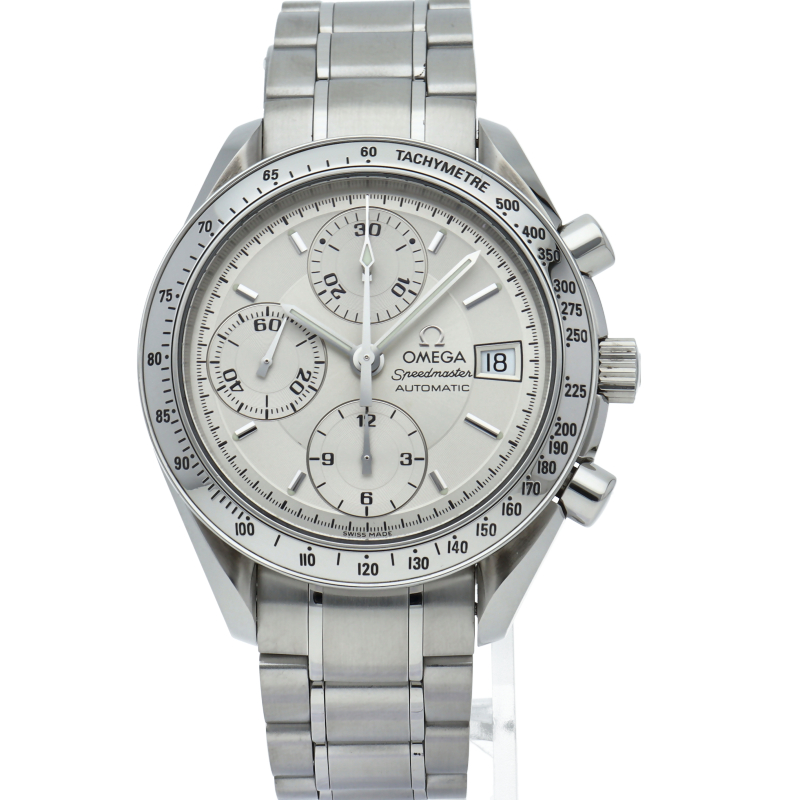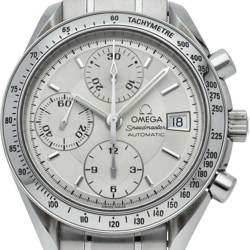 オメガの代表的な人気シリーズ「スピードマスター・デイト」。クロノグラフ・デイト表示機能付きと便利で実用性のある1本です。