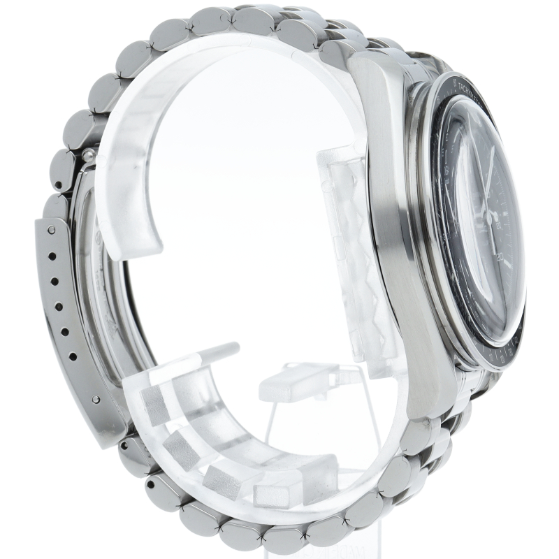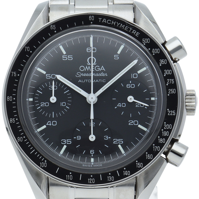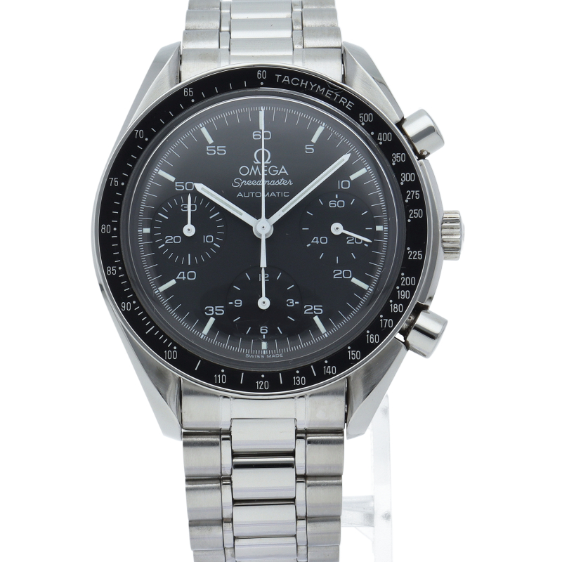 オメガを代表する人気シリーズ「スピードマスター」。プラ風防を使用したレトロな雰囲気かつシンプルにまとまったデザインがスタイルを選ばずにご使用いただけます。