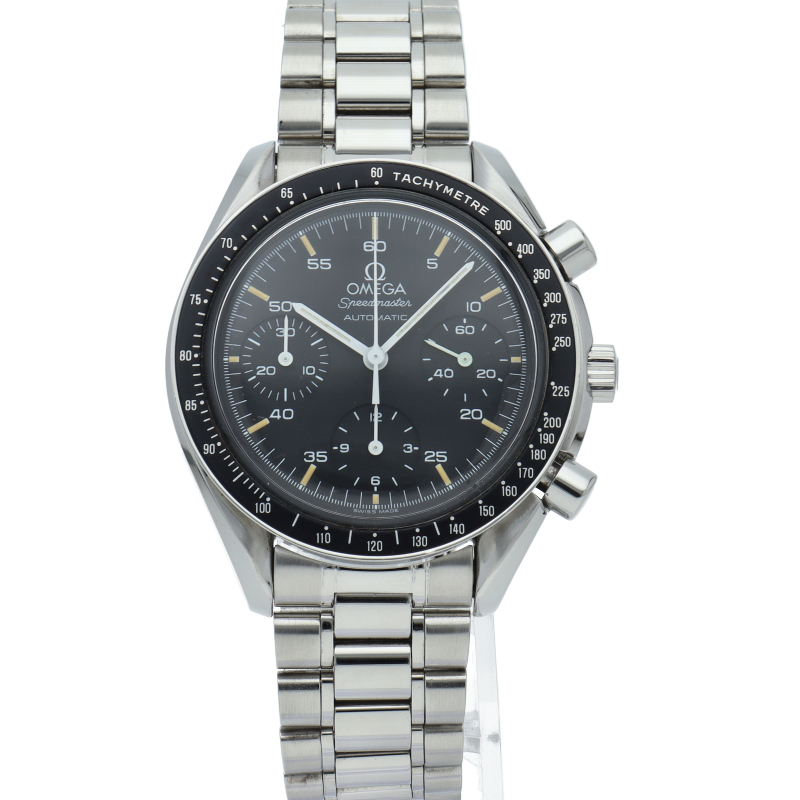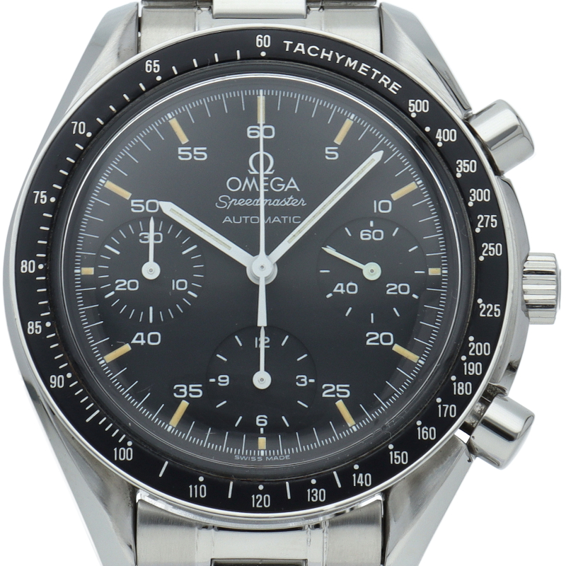 オメガを代表する人気シリーズ「スピードマスター」。プラ風防を使用したレトロな雰囲気かつシンプルにまとまったデザインがスタイルを選ばずにご使用いただけます。