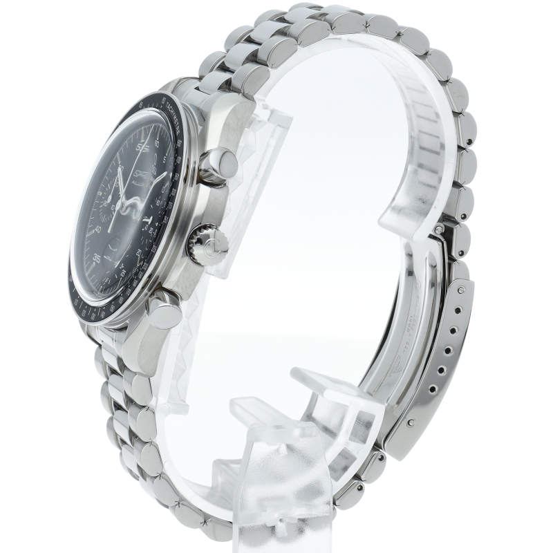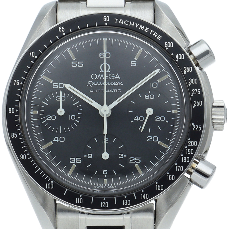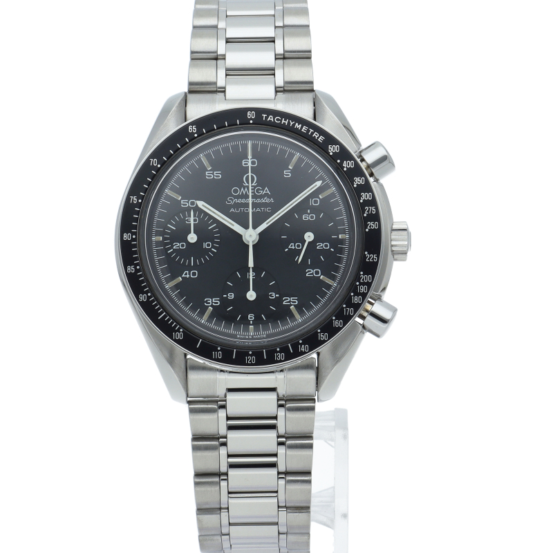 オメガを代表する人気シリーズ「スピードマスター」。プラ風防を使用したレトロな雰囲気かつシンプルにまとまったデザインがスタイルを選ばずにご使用いただけます。