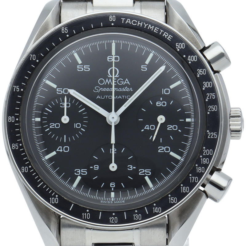 オメガを代表する人気シリーズ「スピードマスター」。プラ風防を使用したレトロな雰囲気かつシンプルにまとまったデザインがスタイルを選ばずにご使用いただけます。