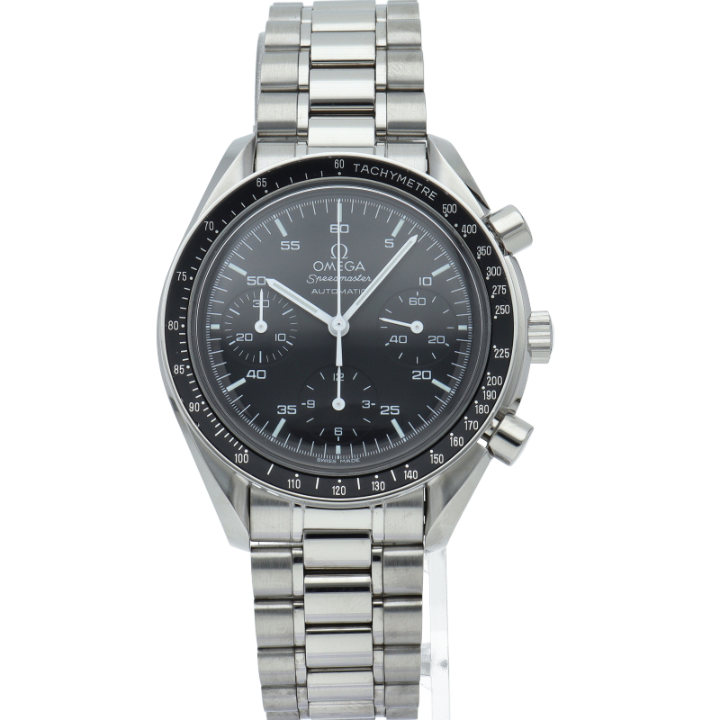 オメガを代表する人気シリーズ「スピードマスター」。プラ風防を使用したレトロな雰囲気かつシンプルにまとまったデザインがスタイルを選ばずにご使用いただけます。