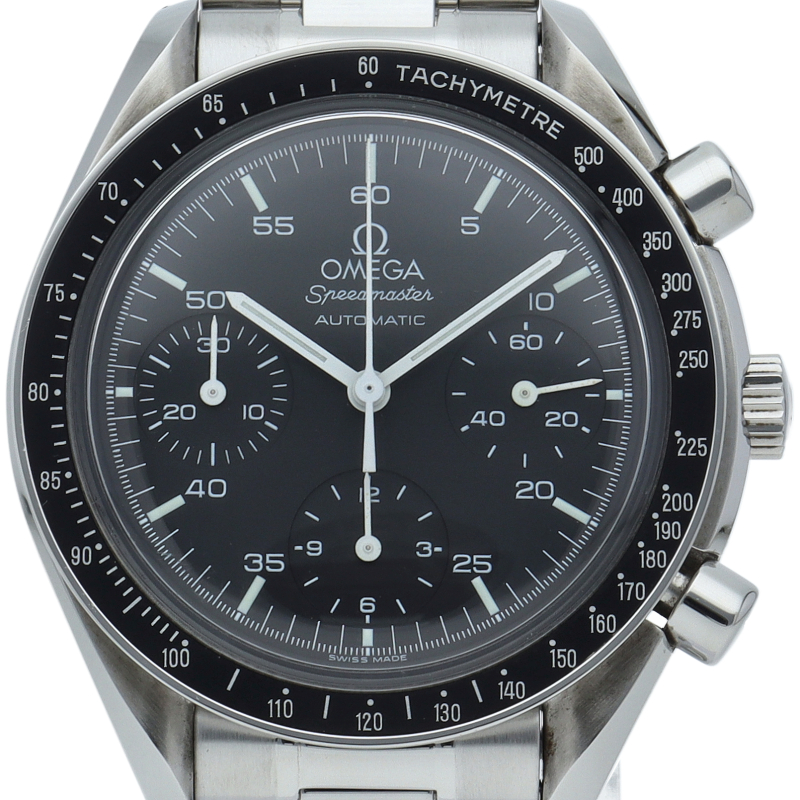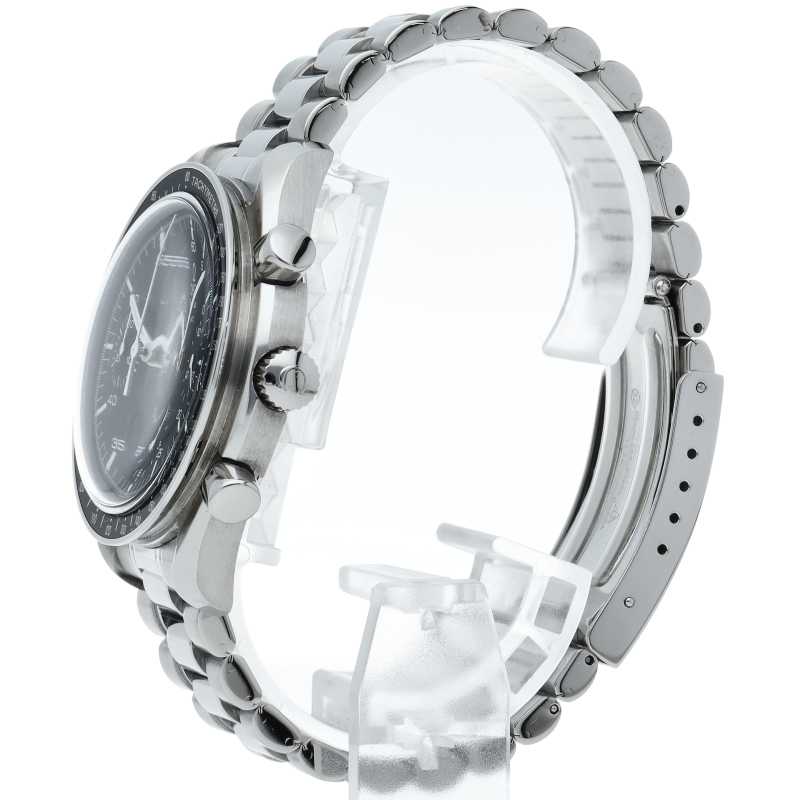 オメガを代表する人気シリーズ「スピードマスター」。プラ風防を使用したレトロな雰囲気かつシンプルにまとまったデザインがスタイルを選ばずにご使用いただけます。