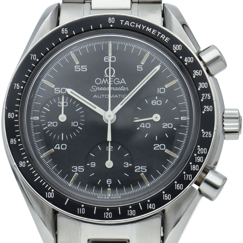 オメガを代表する人気シリーズ「スピードマスター」。プラ風防を使用したレトロな雰囲気かつシンプルにまとまったデザインがスタイルを選ばずにご使用いただけます。