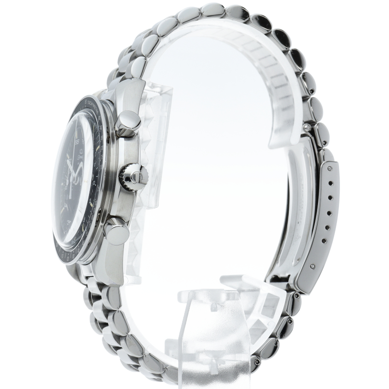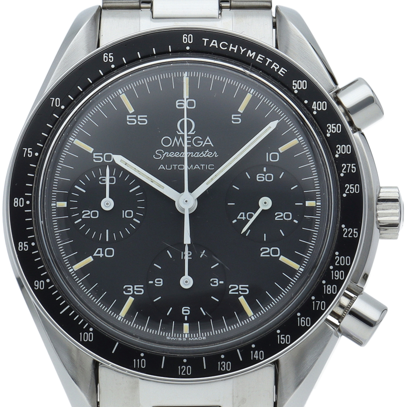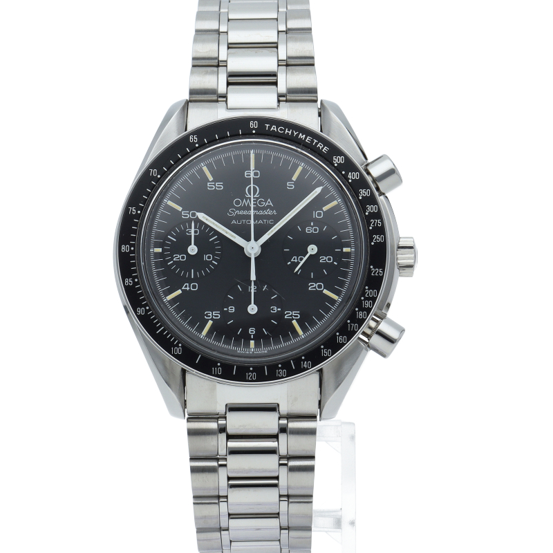 オメガを代表する人気シリーズ「スピードマスター」。プラ風防を使用したレトロな雰囲気かつシンプルにまとまったデザインがスタイルを選ばずにご使用いただけます。
