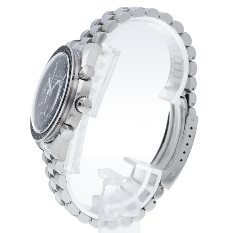 オメガを代表する人気シリーズ「スピードマスター」。プラ風防を使用したレトロな雰囲気かつシンプルにまとまったデザインがスタイルを選ばずにご使用いただけます。