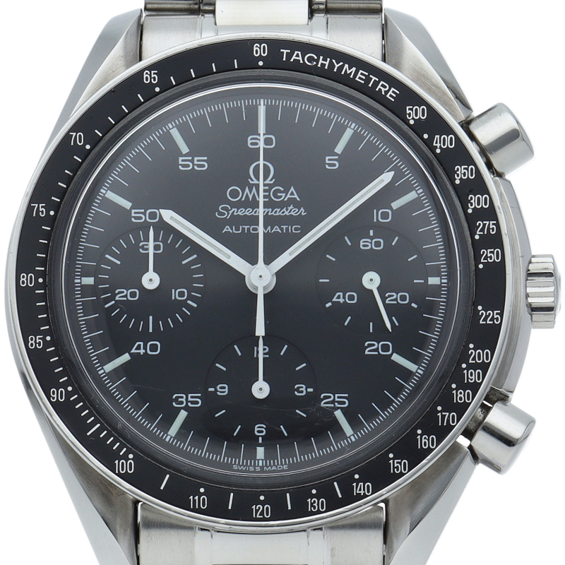 オメガを代表する人気シリーズ「スピードマスター」。プラ風防を使用したレトロな雰囲気かつシンプルにまとまったデザインがスタイルを選ばずにご使用いただけます。