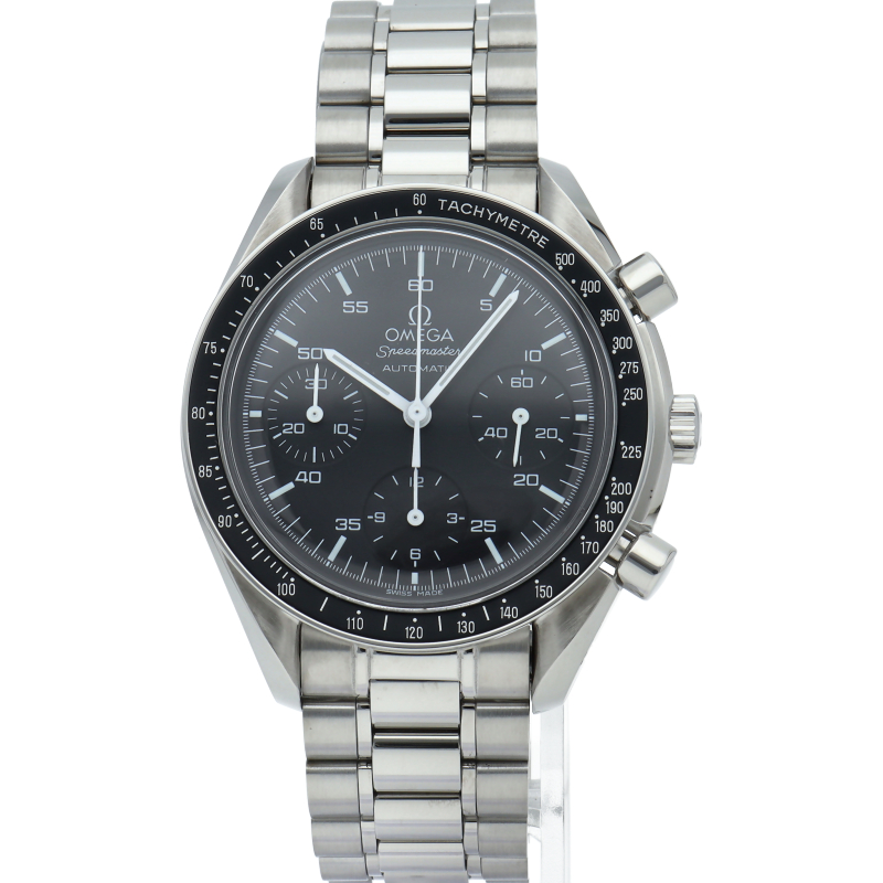 オメガを代表する人気シリーズ「スピードマスター」。プラ風防を使用したレトロな雰囲気かつシンプルにまとまったデザインがスタイルを選ばずにご使用いただけます。