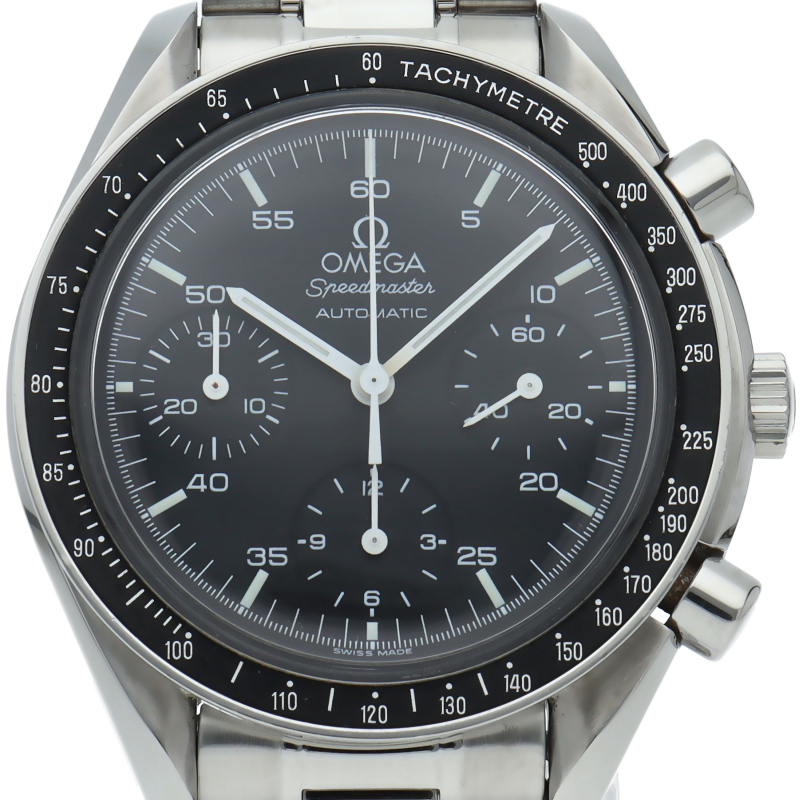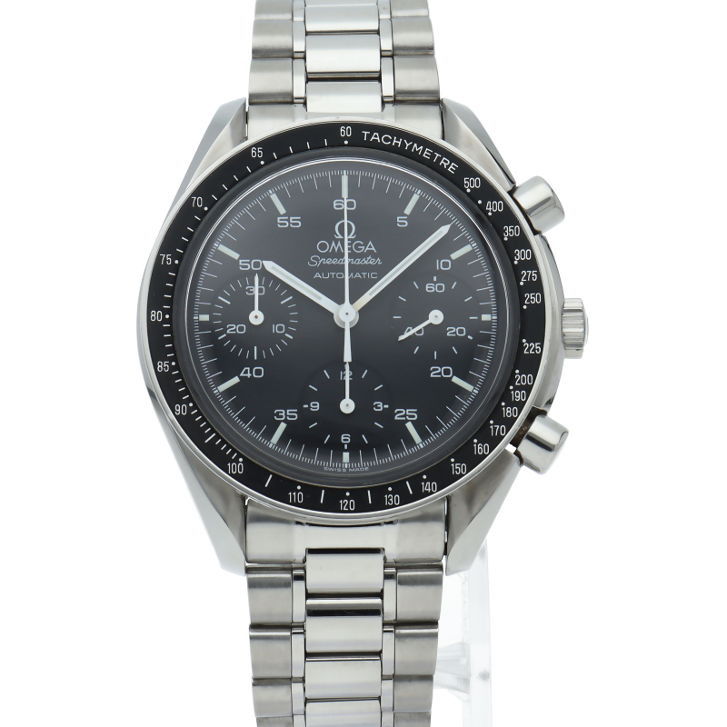 オメガを代表する人気シリーズ「スピードマスター」。プラ風防を使用したレトロな雰囲気かつシンプルにまとまったデザインがスタイルを選ばずにご使用いただけます。