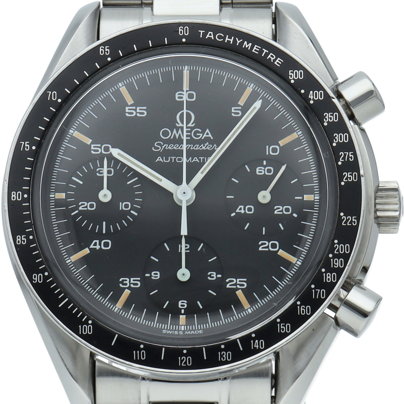 オメガを代表する人気シリーズ「スピードマスター」。プラ風防を使用したレトロな雰囲気かつシンプルにまとまったデザインがスタイルを選ばずにご使用いただけます。