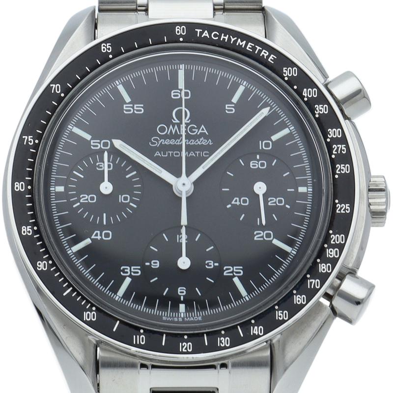 オメガを代表する人気シリーズ「スピードマスター」。プラ風防を使用したレトロな雰囲気かつシンプルにまとまったデザインがスタイルを選ばずにご使用いただけます。