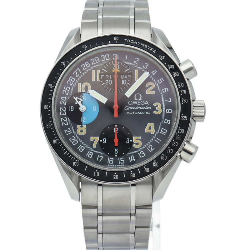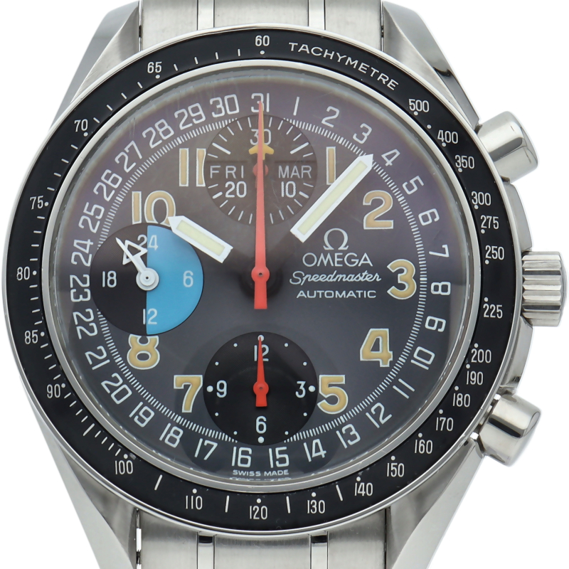 オメガを代表する人気シリーズ「スピードマスター」。トリプルカレンダーやタキメーターベゼル等多機能かつデザイン性も優れている実用的な時計です。