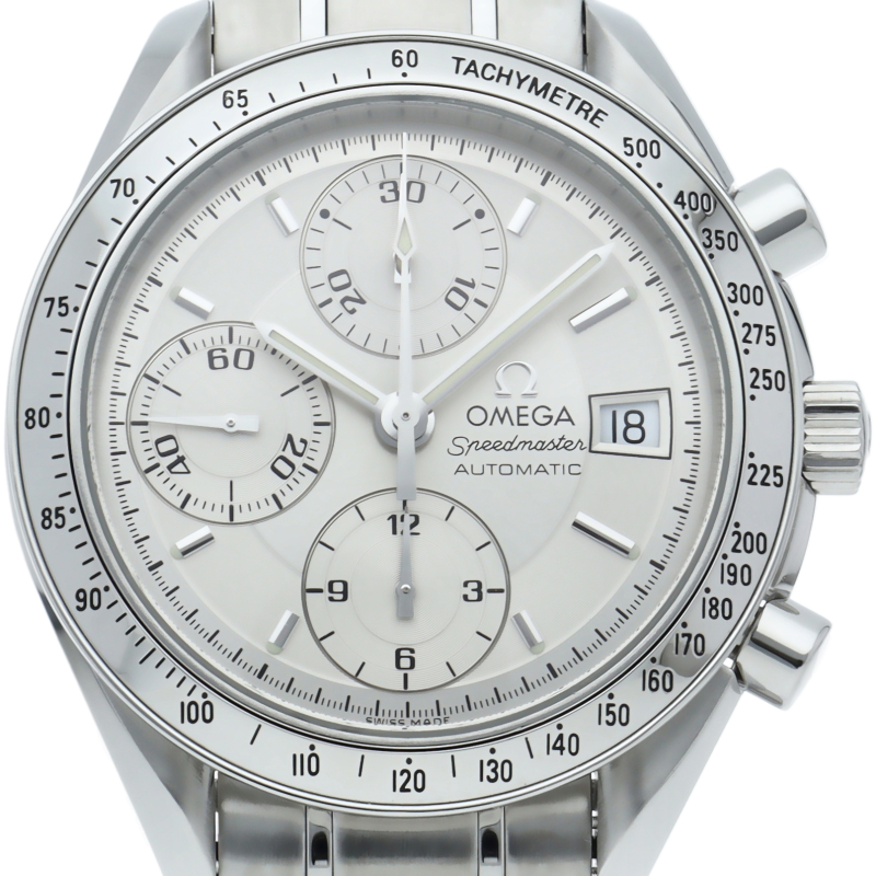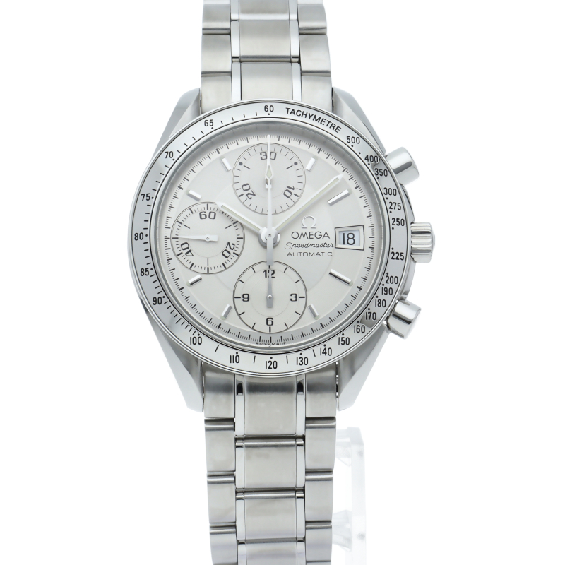 オメガの代表的な人気シリーズ「スピードマスター・デイト」。クロノグラフ・デイト表示機能付きと便利で実用性のある1本です。