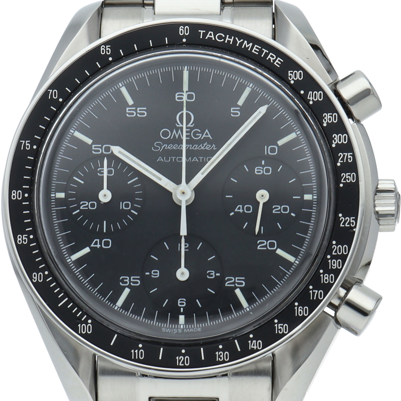オメガを代表する人気シリーズ「スピードマスター」。プラ風防を使用したレトロな雰囲気かつシンプルにまとまったデザインがスタイルを選ばずにご使用いただけます。