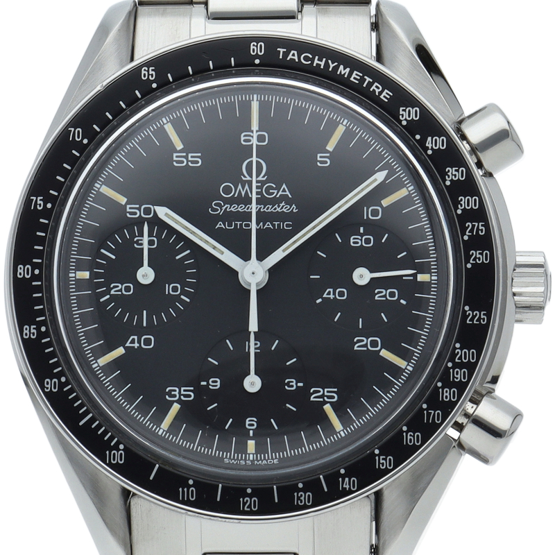 オメガを代表する人気シリーズ「スピードマスター」。プラ風防を使用したレトロな雰囲気かつシンプルにまとまったデザインがスタイルを選ばずにご使用いただけます。