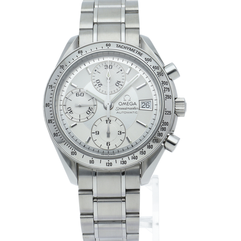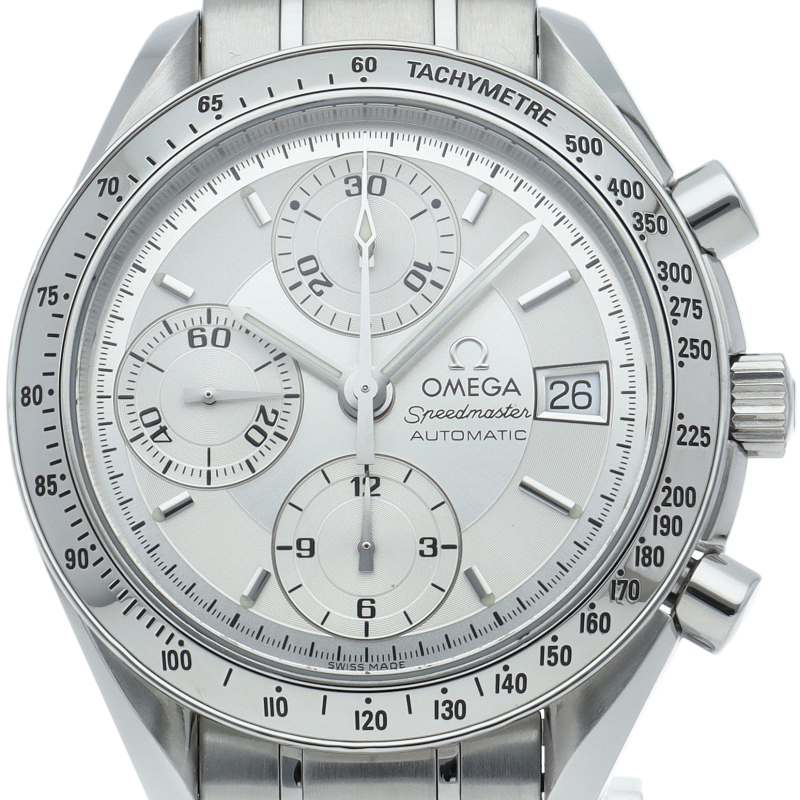 オメガの代表的な人気シリーズ「スピードマスター・デイト」。クロノグラフ・デイト表示機能付きと便利で実用性のある1本です。